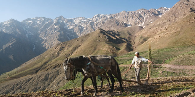 Nous commençons notre Randonnée Toubkal le matin de Marrakech pour une agréable route vers le sud, en remontant à travers les gorges de Moulay Brahim pour arriver aux collines des hautes montagnes du Haut Atlas. Notre chemin mène à Imi Oughlad (1450m) avec Jbel Toubkal (4167m – le plus élevé en Afrique du Nord), Aglzim (3650m) et Aksoual (3847 m). Ici, nous rencontrerons le douars berbères. Nous sommes en train de tourner dans une direction Nord/Ouest pour une randonnée d’acclimatation de 2h pour changer de piste de mule, passons par des plantations de mais et des forêts de pins à Tizi N’Tast (2000m).